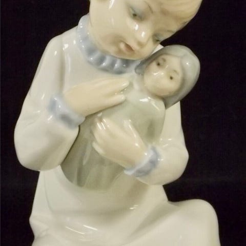 Zaphir Lladro 🍬GIRL HOLDING BABY DOLL 👼🏻Porselen Figurinne Spain Rare