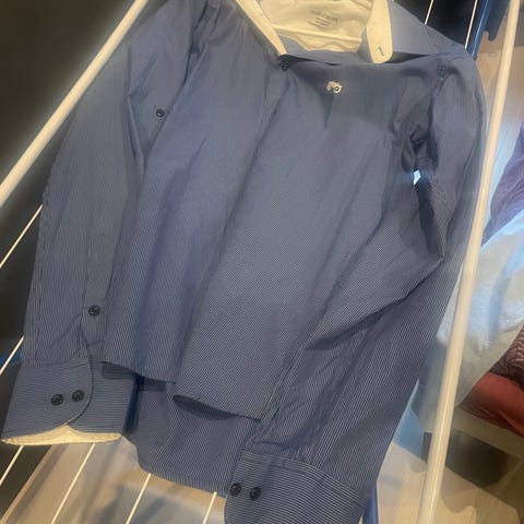 Selger min blå pinstriped Raincho (unisex) fra Norwegian Rain.