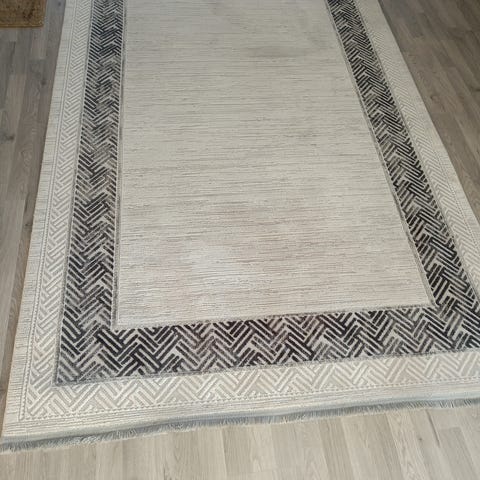 IKEA Linn teppe i størrelse 133x185 cm. Teppe i lys beige farge med diskret rutemønster.