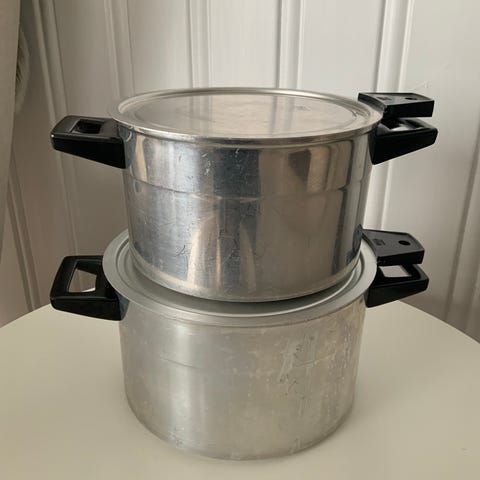 2 store høyang gryter selges. 150,-kr pr stk. Kan ikke brukes på induksjonstopper.