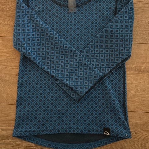 Svært pent brukt nydelig blå farget merinoull/bomull genser fra gullkorn