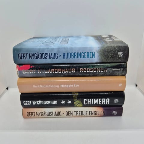 Gert Nygårdshaug - Chimera, innbundet, 415 sider. Utgitt av Cappelen i 2011, 1 opplag, 2. Utgave. Romanen er en øko-thriller med spenningspreg, der naturvitenskapelige temaer og miljøproblematikk står sentralt.