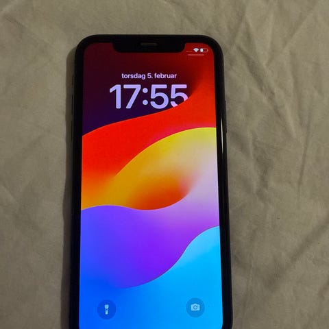 Telefonen har en del riper i skjermen og generelle bruksspor rundt kantene (se bilder). Dette er kun kosmetisk – alt fungerer fint: skjerm, kamera, Face ID, høyttalere og knapper. Ingen kjente tekniske feil.
