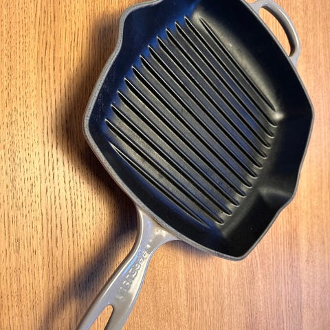 Ny grillpanne fra Le Creuset i støpejern. Disse har livstidsgaranti. Koster ny 2.100 og er på tilbud i butikkene nå til 1399,- åpen for bud.