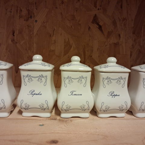 Selger 4 stk håndmalte krydderbokser i porselen fra Portugisiske Loucarte.