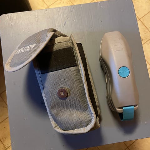 Gyproc Blade Runner skøytesliper i grå og blå farge. Håndholdt sliper for vedlikehold av skøyteegg. Enheten har ergonomisk håndtak og utskiftbare slipeinnsatser på undersiden. Leveres med etui for oppbevaring og transport. Egnet til enkel sliping og justering av skøyter hjemme eller på isbanen.