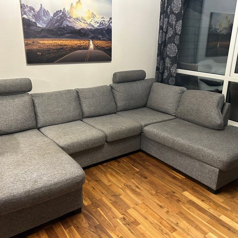 God og romslig hjørnesofa som er veldig komfortabel å sitte i