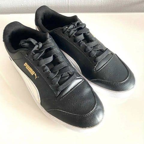 Puma joggesko unisex i størrelse 39. Skoene har overdel i syntetisk materiale og tekstil med svart og hvit farge, samt grønne detaljer. Snøring foran og polstret hæl og pløse for bedre komfort. Yttersåle i gummi gir godt grep. Passer til hverdagsbruk og fritidsaktiviteter for barn og ungdom.