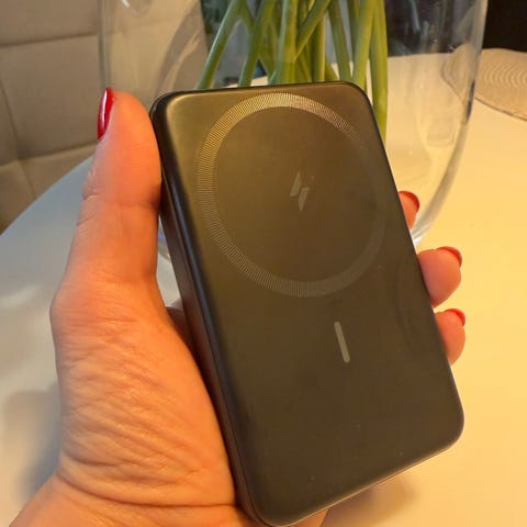 Selger en Anker MagGo magnetisk powerbank på 5000 mAh. Pent brukt og fungerer som den skal. Festes magnetisk til kompatible telefoner og gir praktisk trådløs lading. Har støtteben slik at telefonen kan stå under lading.