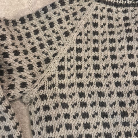 Ny, hjemmestrikket islender, blågrå med hvite spetter selges kr. 900,-. Genseren er ubrukt og er meget myk og behagelig å ha på. Den er slitesterk og strikket av et garn som heter "Sterk" (40 % alpakka, 40 % Merinoull som er forsterket med 20 % nylon). Alle mål er avbildet, men totalt sett er vel genseren i størrelse L eller XL - se bilder og vurder selv! Øvrige mål fåes ved henvendelse.