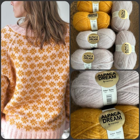 Strikkepakken består av Oppskrift og 14 nøster (+ litt ekstra)