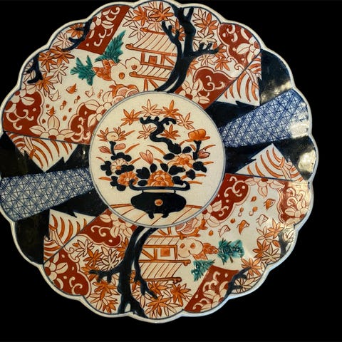 2 flotte marokkanske porselensfat. Ekte kinesisk Taous. Begge er av den største varianten. Selges for kr 2000.