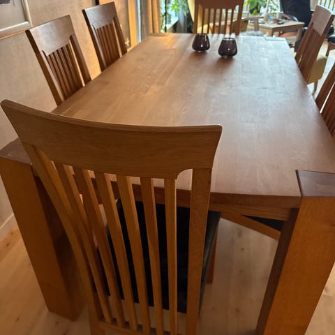 Stilig sortmalt spisebord i solid treverk med mulighet å forlenge.