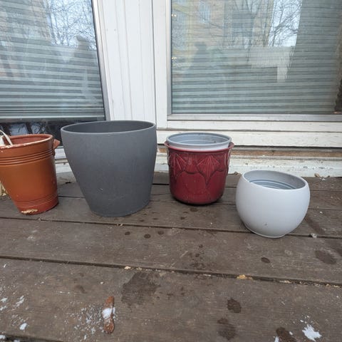 Samling med ulike små blomsterpotter.