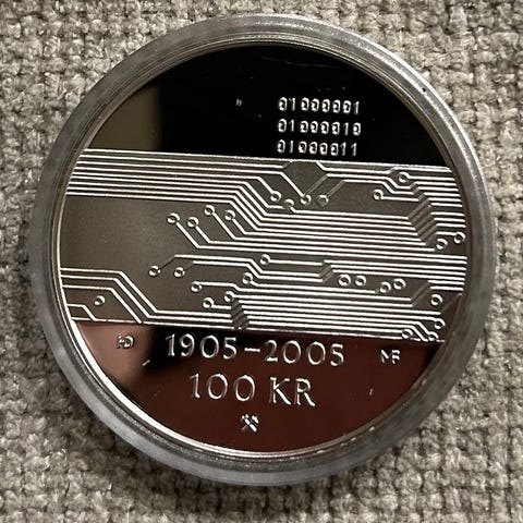 Norges Bank Hundreårsjubileet 1905–2005 minnemynt 100 kroner sølv 39 mm