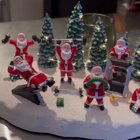 Mye pynte gjenstander som er fra Rusta, taco brett, vifte, trenings strikk og en lampe.