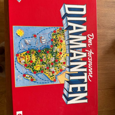 Den forsvunne diamanten brettspill. Klassisk familiespill der spillerne reiser rundt på kartet for å finne den forsvunne diamanten. Spillet passer for flere spillere og kan spilles av både barn og voksne.