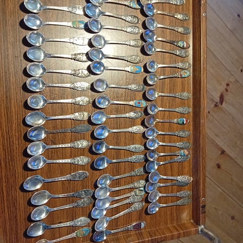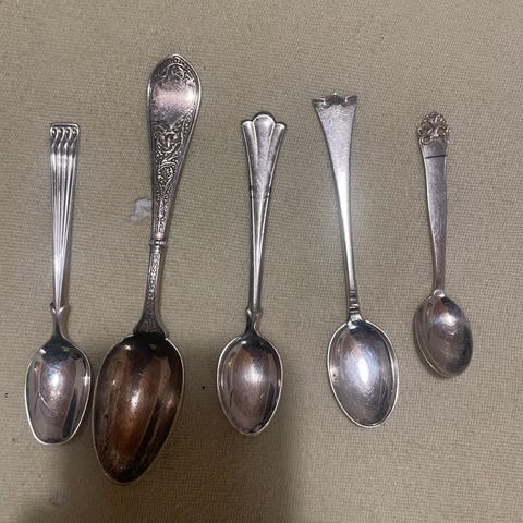Teskjeer i sølvplett med ulike mønstre på skaftet. Bestikket har stempler som angir sølvplettkvalitet. Egner seg som teskjeer til kaffe, te eller dessert, og kan også brukes som samleobjekter eller supplement til eksisterende sølvplettbestikk.