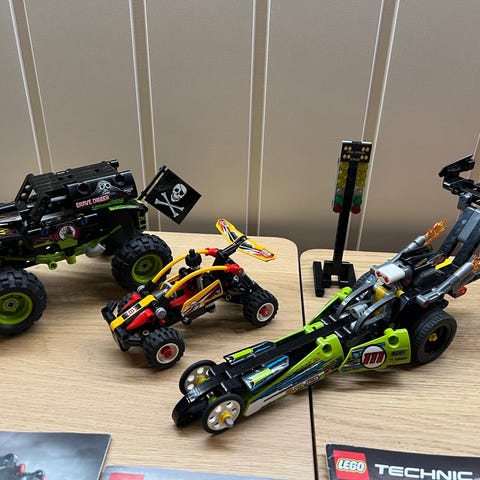 Jeg selger også Lego racer 8122 i separat annonse. Begge disse kan bli hver sin bil, men kan også bygges sammen til en større bil. (Se bilde 3). Halvparten av instruksjonen til kombinasjonen er i hver av settene.