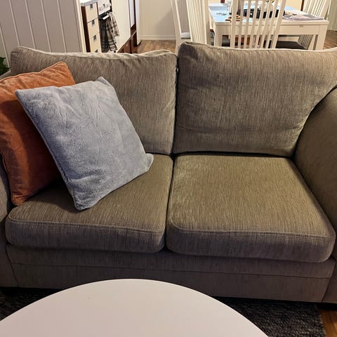 Hel og grei beige sofa 3+2. Alle putene har vaskbare trekk. Røykfri hjem.