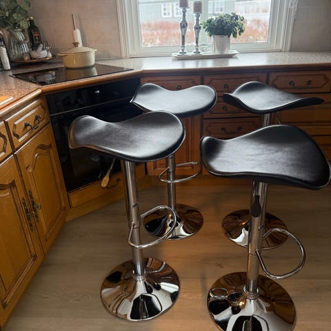 Godt brukt men funksjonelle bar krakker gis bort. En har en rift i setet. Trenger en vask.
