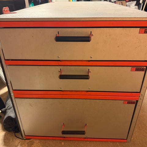 Selger en skuffeinnredning som har vært montert i Fiat Doblo maxi, 2015 mod, men kan nok tilpasses i andre biler. Demontert og befinner seg i Hammerfest, 2 skuffer bak og 1 på høyre side, mål ca 2 x 1,4 meter, høyde ca 31 cm, fastpris
