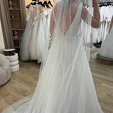 Jeg selger et nydelig brudeslør på 3 meter. Stoffet oppleves lett og festes med kam.
