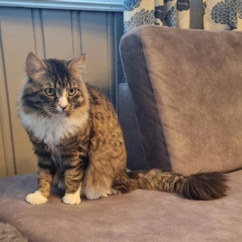Arista er født i April 2025 og er den eneste søsknenet igjen her hos oss siden hun har trengt litt ekstra tid på å bli trygg.