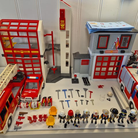 - Playmobil brannstasjon og brannbiler.