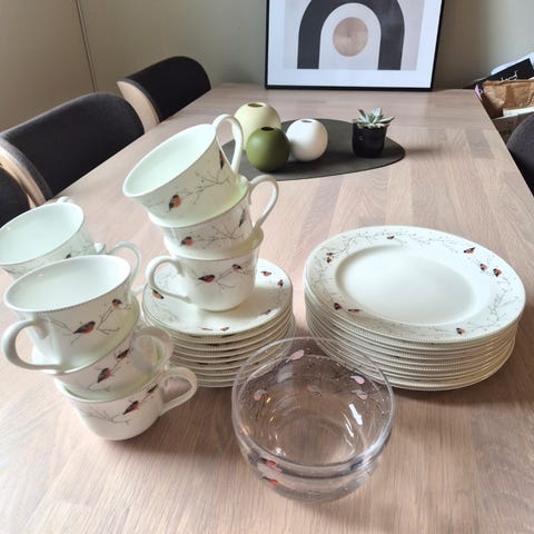 Fungerer kanskje best som skåler, da de er litt tykke og tunge. Selger 12 stk. som er tilnærmet ubrukt. Selges samlet.