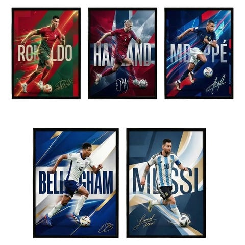 Messi, Ronaldo, Mbappe, Salah, Haaland, Neymar Plakater