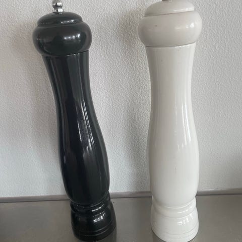 Stor salt og pepper kvern, der pepper kvern har løst hodet, men fikses sikkert lett med litt lim! Ellers veldig gode!
