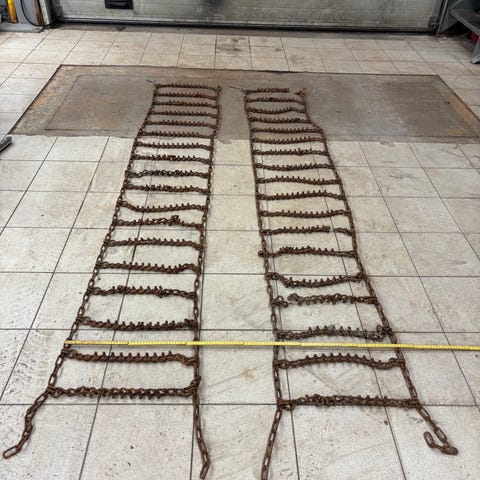 Kjettinger uvisst hva de har vært til, men ca 50cm bredde og 300cm lengde slik de ligger på bildet.