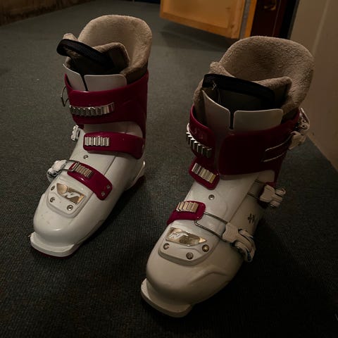 Nordica alpinsko i blå og hvit farge. Mondo størrelse 240-250, tilsvarer skostørrelse 38-39. Lite brukt og i god stand