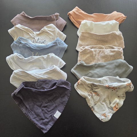 Pent brukte siklesmekker. Totalt 27 stk i brun/hvit/beige/brun og noen med motiv; tigre, bamse og nordiske dyr. Fra røyk og dyrefritt hjem.