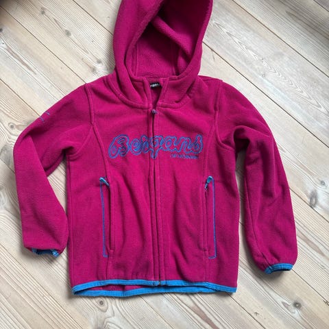 Bergans fleecejakke for barn i størrelse 104. Jakken er rosa og laget i myk fleece. Den har hette, glidelås i front og lommer i siden. Passer som mellomlag eller lett ytterjakke for jenter.