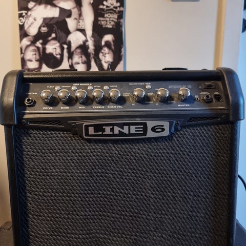 Roland CUBE-30 gitarforsterker med effekt på 30W. Forsterkeren har flere kontrollknapper for justering av lyd, inkludert volum, bass, diskant og gain.
