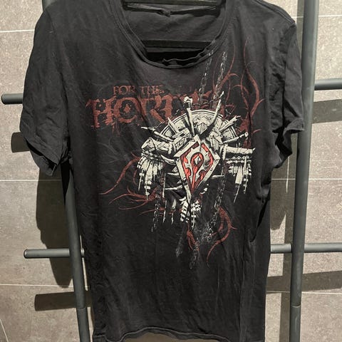 Kjøpt på jinx, lite brukt. Horde-logo foran med Druid-stil, for the horde trykket bakpå. 2xl, men mer som en XL. Tynt og mykt stoff.