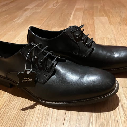 Selger et par håndlaget skinnsko til herre (størrelse 8), tilsvarer 43. Skoen er solide pene som kan brukes både i hverdagen, men også som pensko.