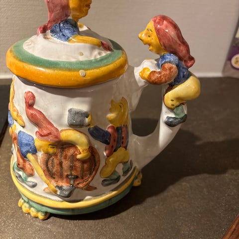 Karaffel i klart krystallglass med slipt mønster på nederste del og glatt hals. Øvre del, helletut og håndtak er sølvbelagt med dekorativ utforming. Egnet til servering av vin, vann eller andre drikker ved borddekking og som innredningsdetalj.