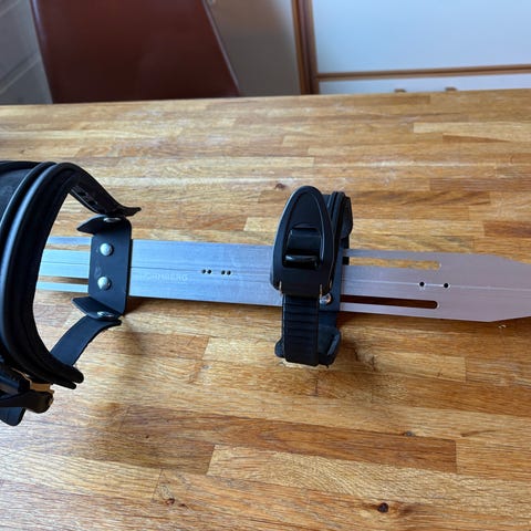 Bindingens plassering kan justeres i lengderetning. Bindinger kan også skrus av og det kan monteres BC bindinger på bladene. Godt med skruehull i platen.