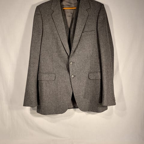 Regency ullblazer for herre i str. L/ 52. Blazeren er gråbrun med vevd mønster og er laget i ren ny ull, med glatt fôr på innsiden. Klassisk modell. Mansjettene har dekorative knapper. Passer til bruk sammen med dressbukse eller chinos, både til jobb og mer formelle anledninger.
