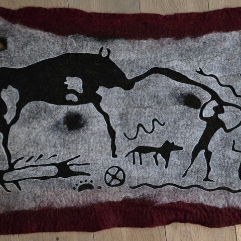 Struktur bilde med kraftig ramme, sydd i ull tekstil. Solid ramme med dobbelt oppheng på baksiden