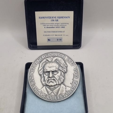 Et solid og dekorativt samleobjekt med historisk betydning. Passer for samlere av norske jubileumsmedaljer, litteraturhistorie eller som en unik gave til kulturinteresserte.