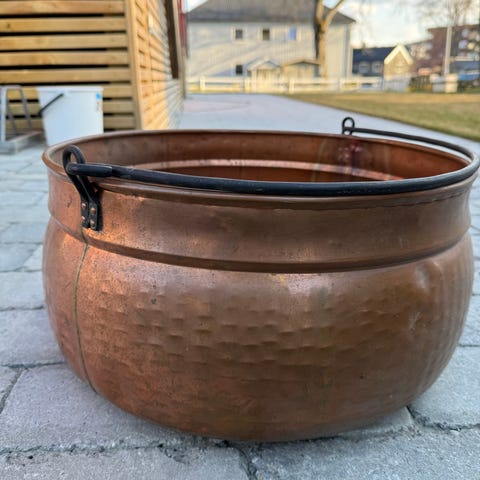 Pent brukt med noe bruksmerker. Bena har litt rust. 38cm høy, 36cm Ø