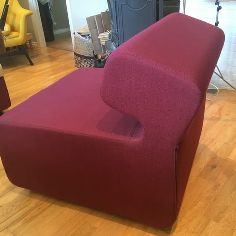 Flott og veldig praktisk sovesofa/daybed fra Bolia. Kledd i rødt tykt ullstoff som tas av. Følger med to pynteputer. Tilsvarer to madrasser oppå hverandre som enkelt brettes ut og blir en stor seng på 180x200. Mål som sofa: ca 203 lang (med trekket) x 90 bred, 45cm høy. Lite brukt, og nærmest stått urørt siste årene. Selges fordi vi bytter til en større sofa. Må hentes.
