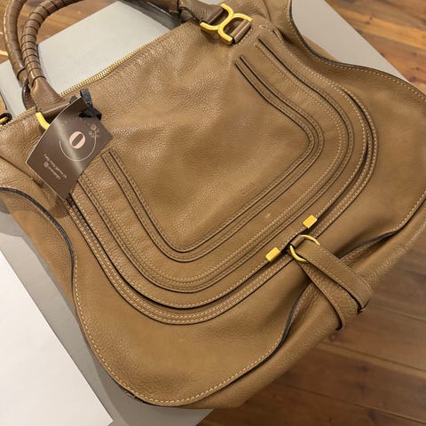 Selger en veske fra Chloè i mørke brunt kalve skinn.