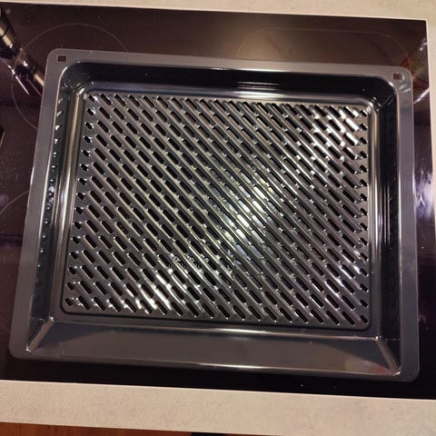En dyp og en flat stekeplate, og en rist gis bort da de ikke passer inn i vår nye stekeovn. Veldig fin stand.