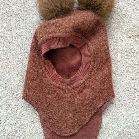 # ullue vinterlue gutt jente unisex brun jordfarget jordtoner nøytral kjønnsnøytral bamselue 92 98 104 ull ullplagg 92/98 98/104 kivat reima pop