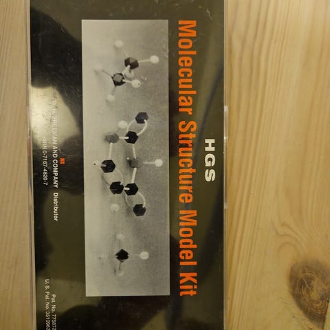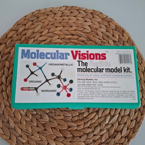 Molekylært byggesett for organisk kjemi. Mangler ingen deler, til og med noen ekstra bindinger som fulgte med. Lite og pent brukt, ingen tydelige merker
